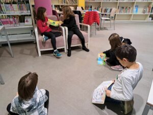 Primer hem enganxat teixells i els hem ordenat seguint la CDU. Després hem fet una visita al magatzem on hem cercat els llibres d’un llistat de peticions i hem après com es fa un inventari. Tot seguit, ens hem col·locat al taulell per atendre les peticions i les reserves de 2 usuaris. I, per acabar, hem escollit contes infantils i ens hem preparat una hora del conte per fer a la resta de companys i companyes.