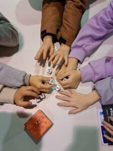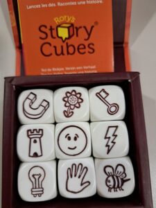 Seguidament, vam deixar volar la nostra imaginació creant històries originals amb el joc de daus Rory’s Story Cubes, un recurs ideal per a persones a qui els agrada inventar i explicar històries. D’aquí en van sorgir idees genials: gegants, viatges a l’espai o fins i tot un meteorit que explota abans d’estavellar-se contra la Terra, d’on sorgeix un monstre que hem de vèncer!