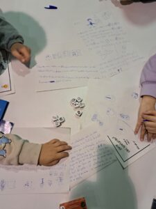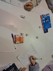 Per acabar, vam reservar un espai perquè cadascú pogués crear la seva pròpia història a partir de les imatges que sortien a l’atzar amb cinc o sis daus, i després les vam compartir amb la resta de companys. Van aparèixer relats tan bons que podrien formar part d’un llibre!